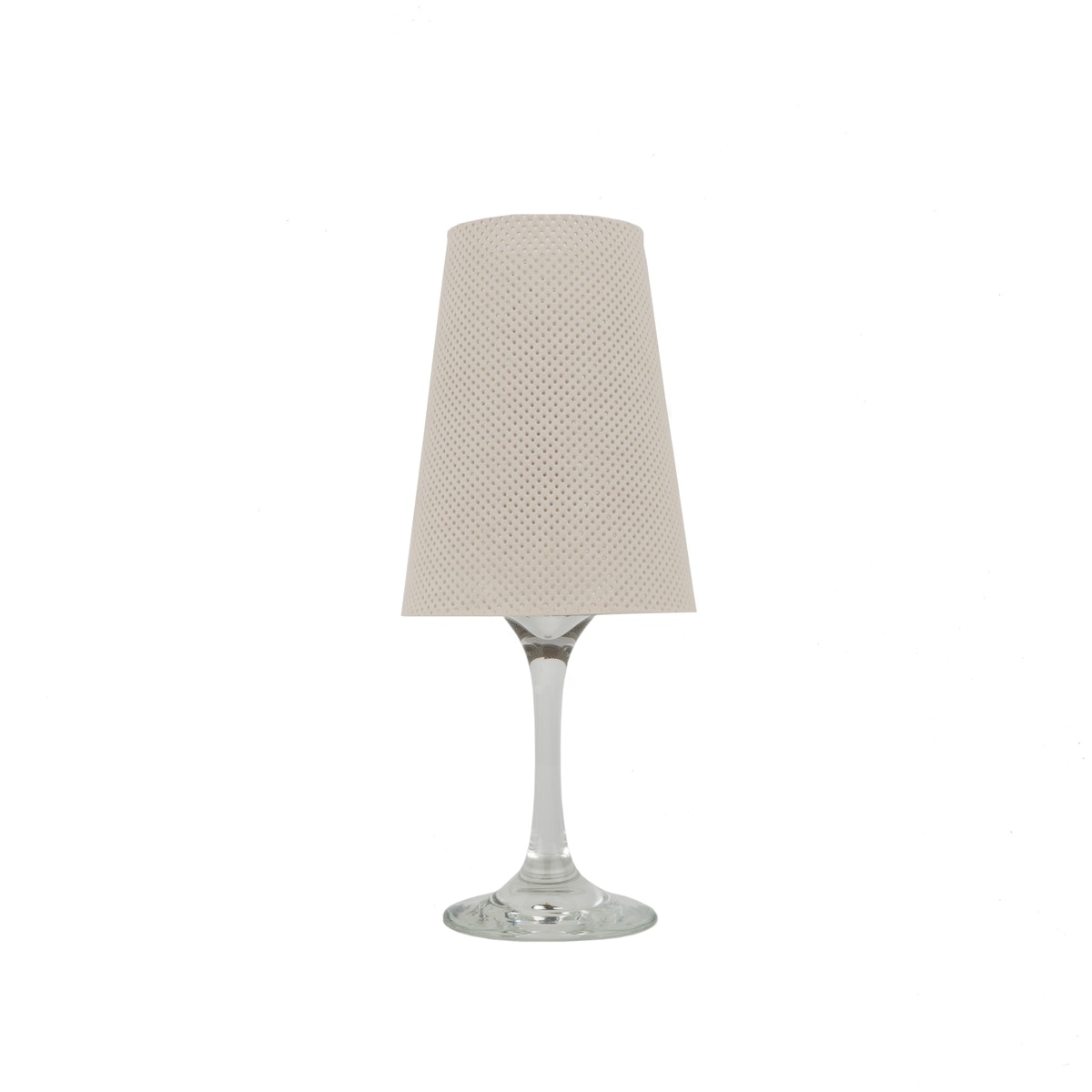 Coloca la pantalla de papel con textura de cuero sobre una copa de vino con una pequeña vela adentro. Apaga las luces y disfruta de un momento acogedor.