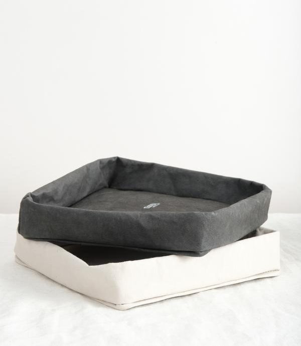 Lollie tiene un diseño minimalista y es muy versátil. Tiene forma de caja si se usa desenrollada y de bandeja si se enrolla.